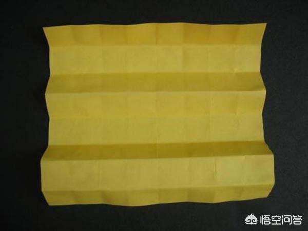 2、步骤二:横向对折,折好的每边再对折,再对折1次,纸上留下横向的折痕共7道,然后再按照同样的方式纵向对折,同样也留下7道纵向的折痕。