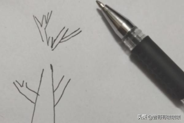 第二步:从树杆往上画出细细的树枝,如下图所示。