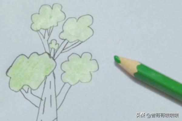 第五步:给智慧树的叶子涂上颜色(绿色)如下图所示。