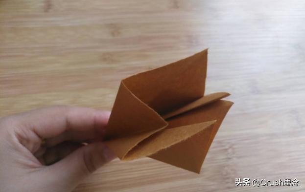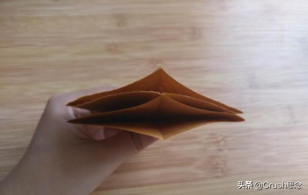 第八步:展开折叠的形状,沿着折痕向外侧压,形成图3的形状,四面相同。