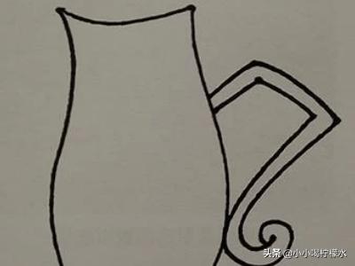 1、画出一个花瓶,花瓶造型要稍微向左倾斜一点,呈上窄下宽的形状。接下来画出花瓶的柄,画的时候要稍微有一些棱角,整体呈一个“几”字型。