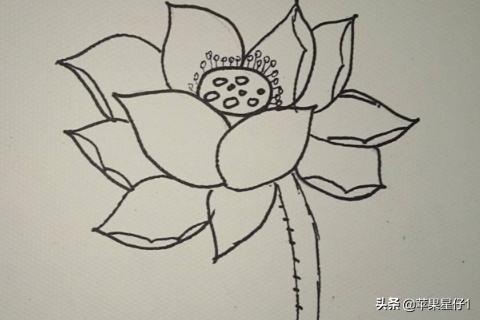2、画出荷花中间的蕊,是一个椭圆形。
