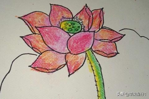 7、用油画棒涂上深浅不同的红色,或者用重彩棒涂上白色,就成了一朵白莲了。