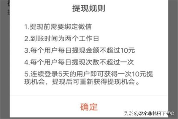 3.提现的话需要满足一定的条件,首先必须绑定微信,因为提现是直接到微信里面的。再有就是每天只能提现一次。
