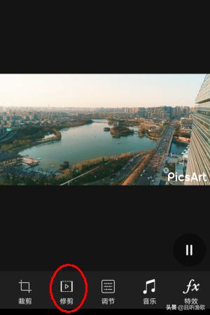 3、找到下方的修剪选项,点击之后进入到视频修剪页面。