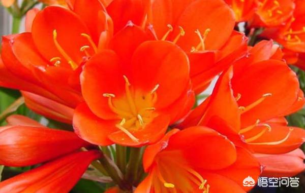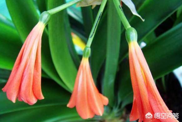大花君子兰叶片宽度一般不超过50毫米,很少达到90毫米的.花的形状有细瓣的,也有宽瓣的,象喇叭一样.里侧的花瓣一般比外侧的花瓣要宽.花的颜色一般是桔色的,有黄白色的内芯.当然也有从黄白色系到暗红色系之间的颜色的花.非常淡的和非常深的颜色的花是比较稀少的.开花时一个花苞里一般有20朵左右的花,也有达到40朵的.浆果中的种子有1-20颗,一般不到10颗.