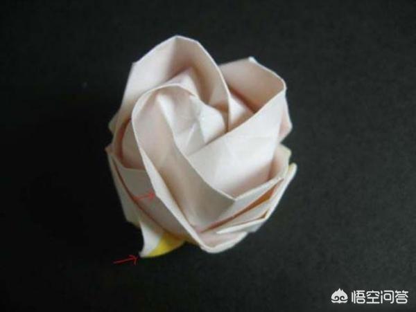 14、步骤十四:轻轻按压花瓣的边缘,令花瓣的外端产生一定的弧度,好像是真的花瓣那样,为了让花看起来更漂亮,可以多试试不同的纸,因为纸张太厚或太薄都会影响花折好后的样子。