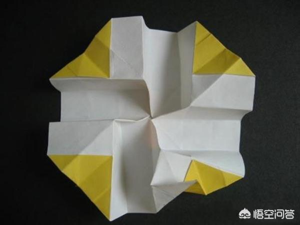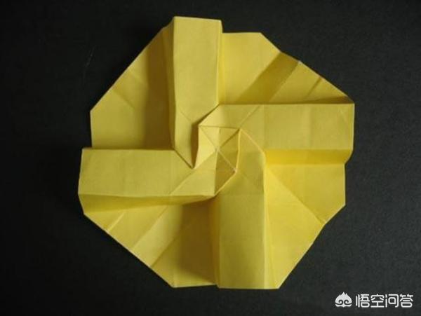 13、步骤十三:按照上面同样的方法,把四边全折好后,再将折纸对折再向后折。四边都折好后的效果图。