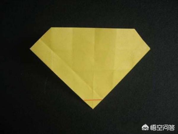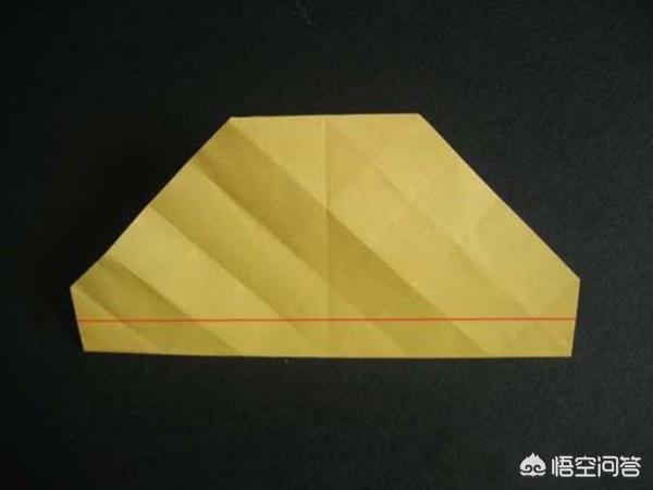 7、步骤七:折好后,再按红色线(最下面的小方块的对角线)位置折起。