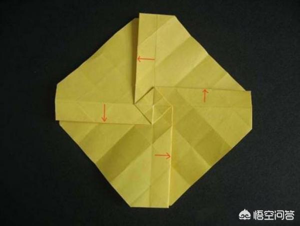 12、步骤十二:四边都完成后的样子,然后再翻过来折出两个向右的小三角。