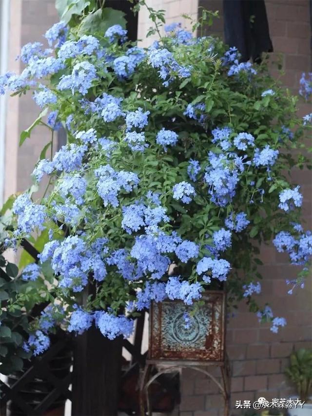 枝条柔软,可作为攀援植物养,茎杆老了之后木质化,可以利用这个特性培养棒棒糖蓝雪花。